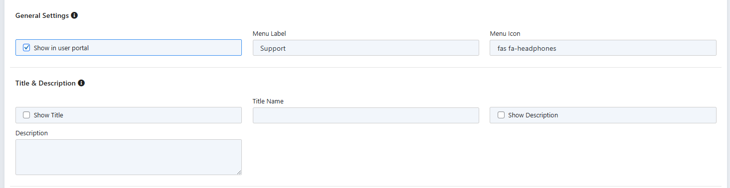 Rename the menu and give it an icon, if desired. Enter a title and description if you would like a message displayed at the top of the page: