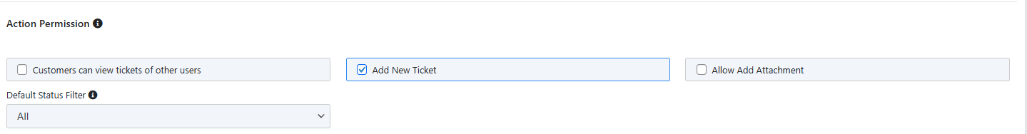Set the ability for users to see tickets of other users. This primarily applies to the Default (Account) based portal. Enable the abilities to add a ticket and/or attachments and set a default filter based on ticket status: