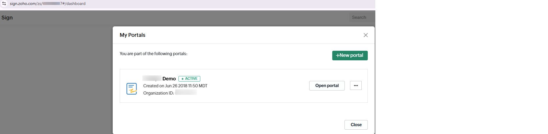 This method features a direct electronic signature modal with PDF downloads, a document list, detail pages and reminders. Obtain the Zoho Sign Org ID by navigating to the portal: