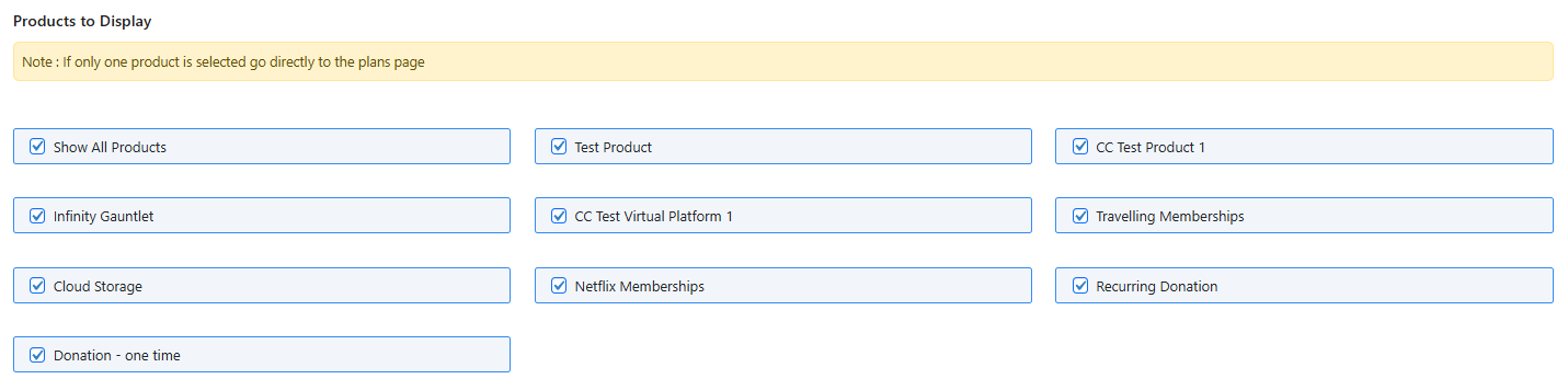 Select the products you intend to show in the portal: