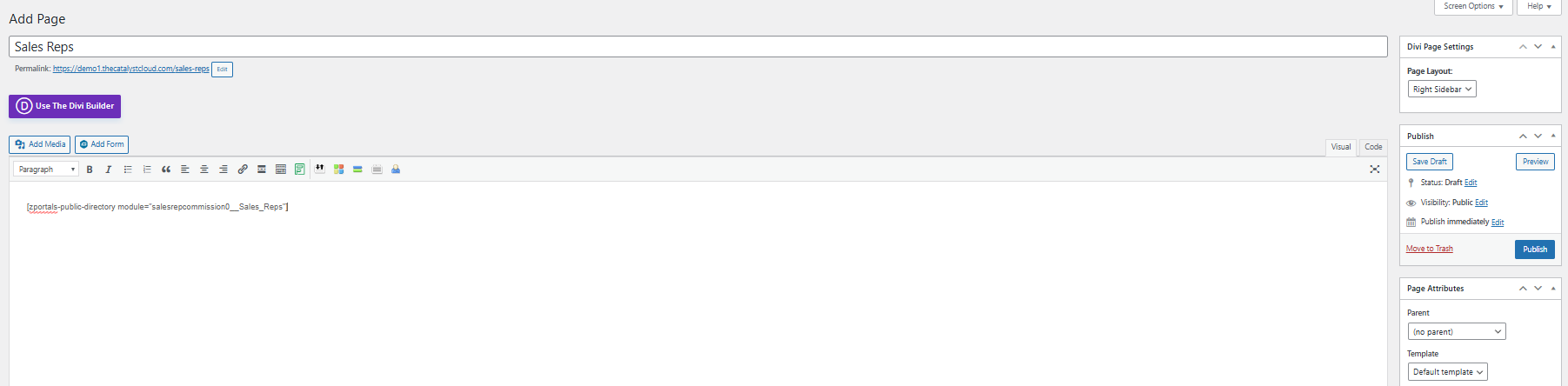 The module is now available to customize. Copy the short code on to a new WordPress page and publish.