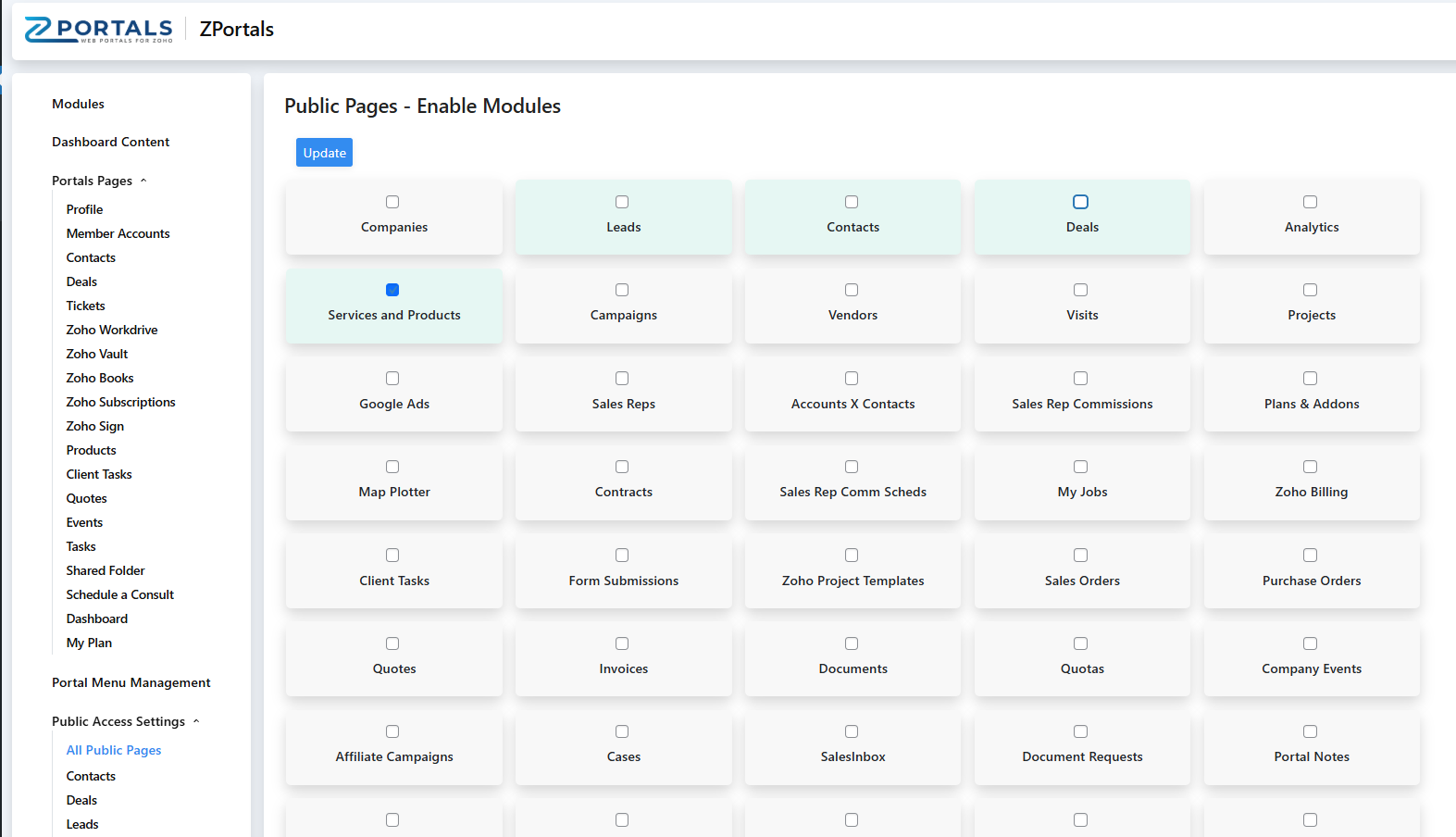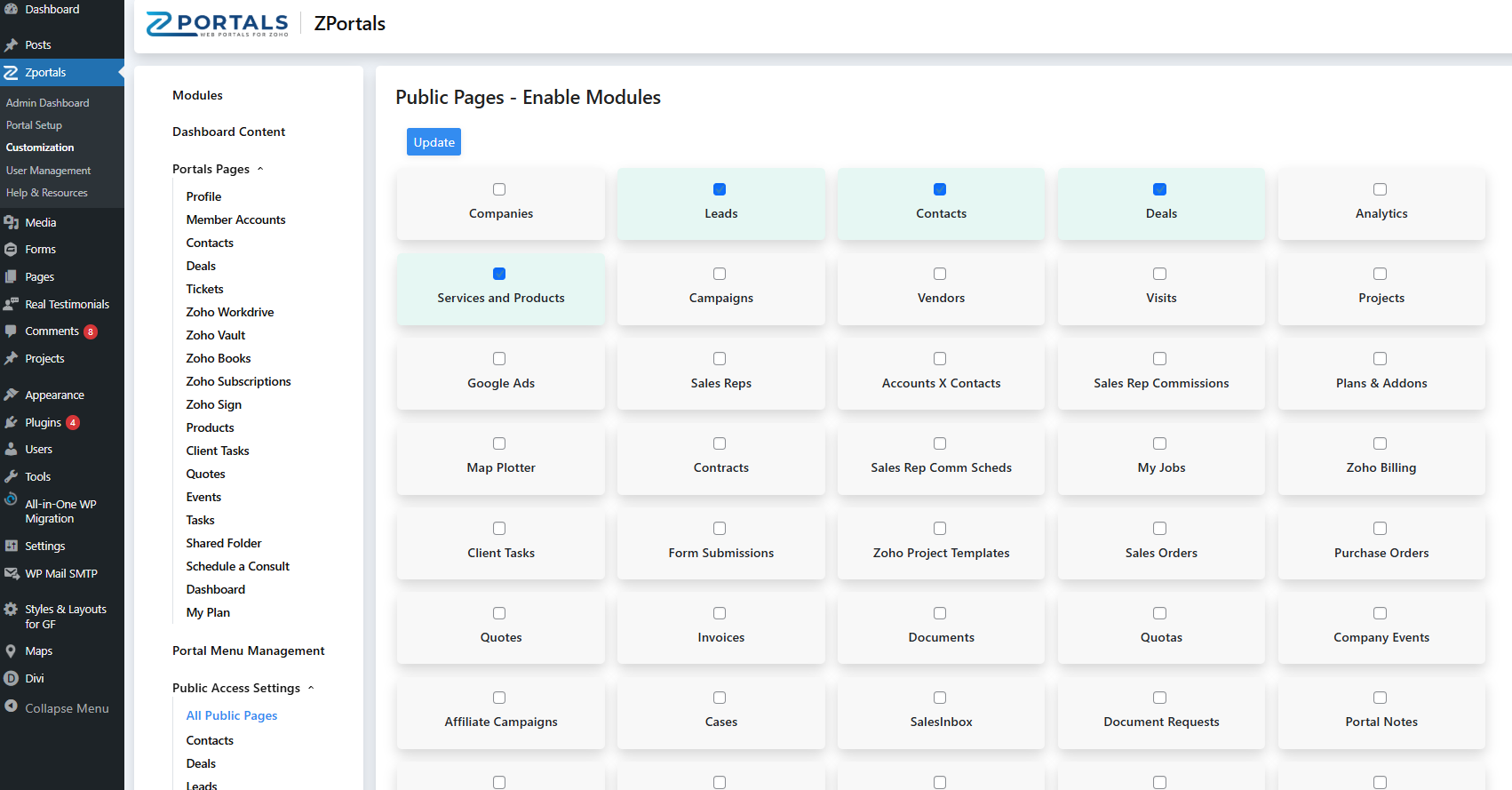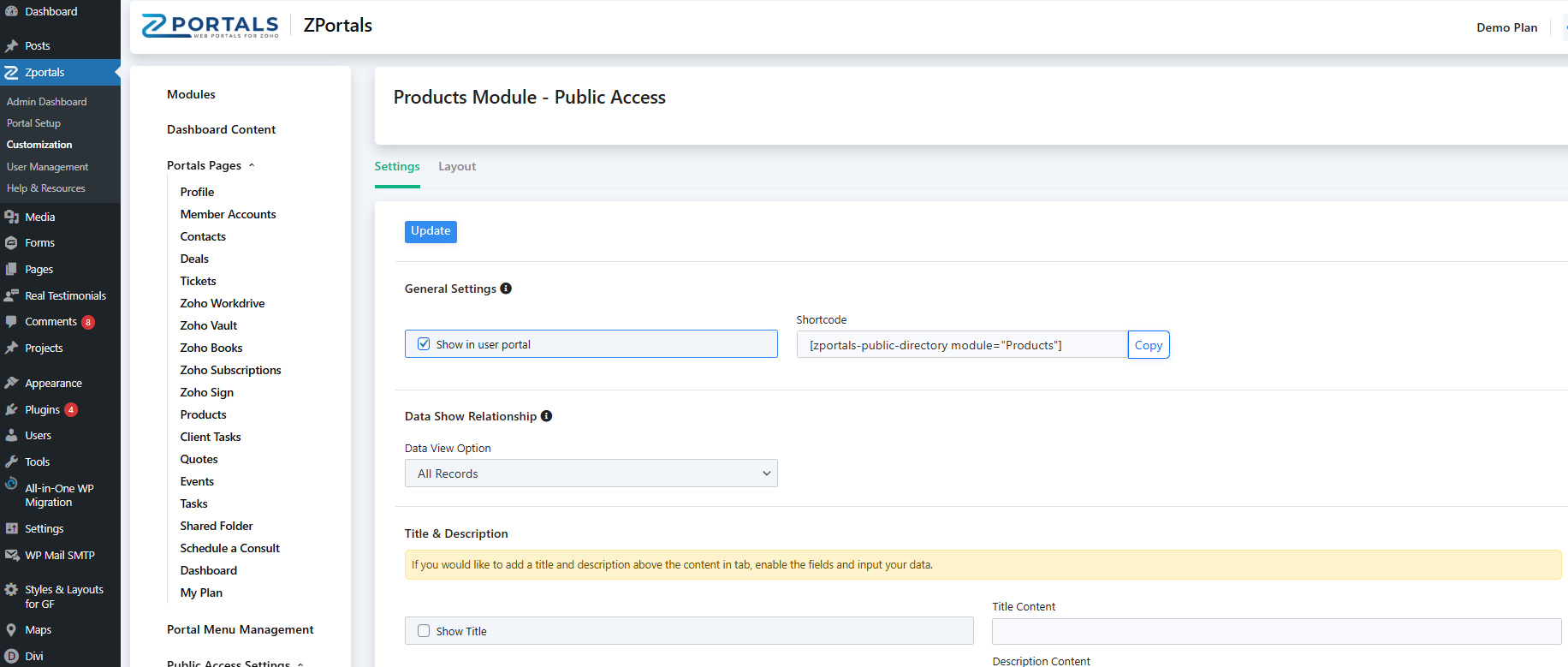 ZPortals allows you to create a public directory of a CRM module that is available to all of your website visitors (not only portal Users). It can solve for real estate agents that would like to show open properties, companies that sell products and services, a directory of personnel or any instance where a CRM module contains data that can be shared with anyone, publicly on their WordPress site without having to be a registered site user.